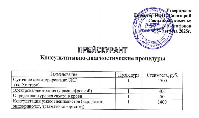 → Прейскурант на Консультивно-диагностические процедуры 2025